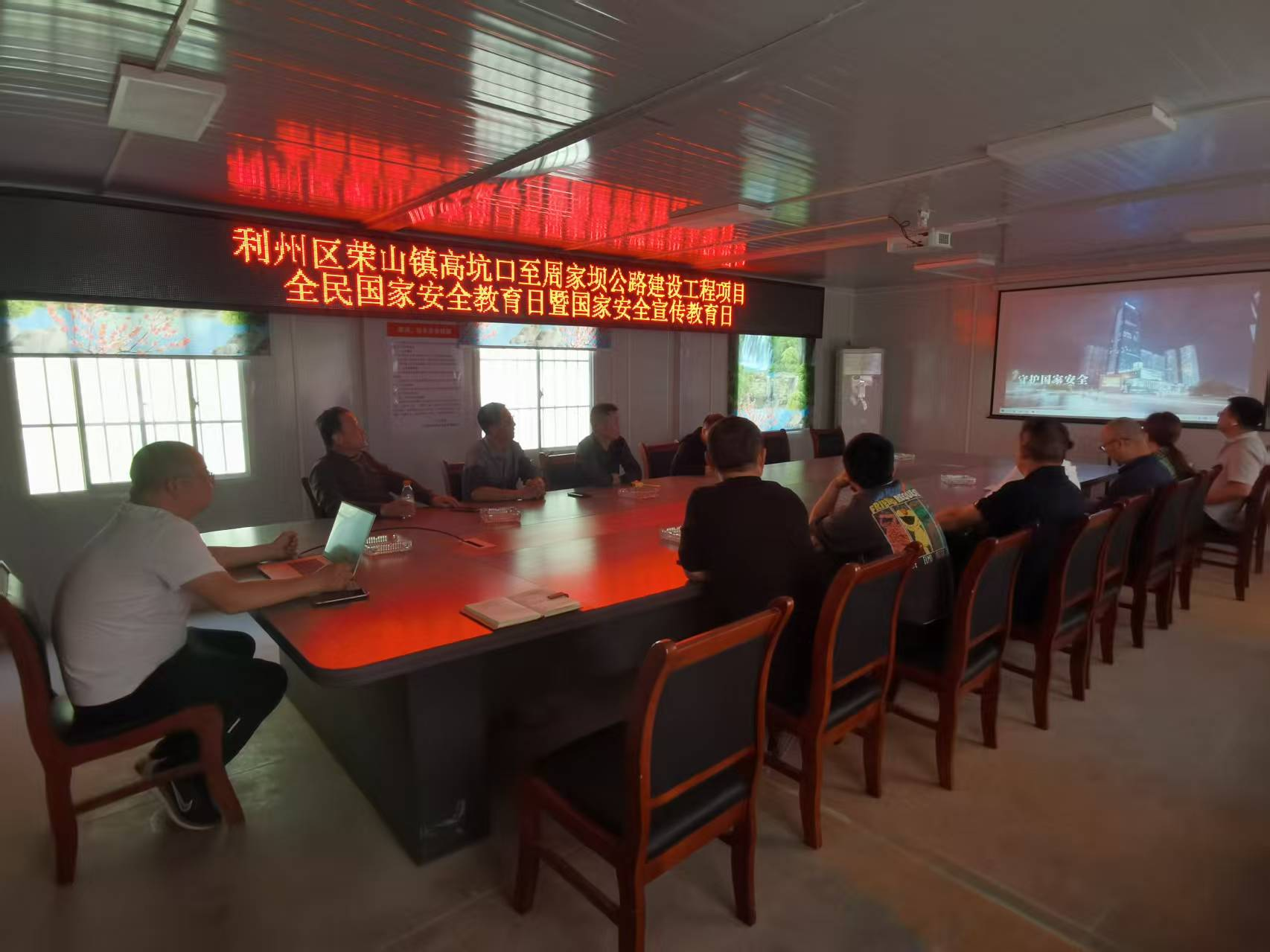 公司各部門干部職工、廣元市利州區(qū)榮山鎮(zhèn)高坑口至周家壩公路建設(shè)工程項(xiàng)目部人員觀看警示視頻,集中學(xué)習(xí)國家安全教育知識(shí)